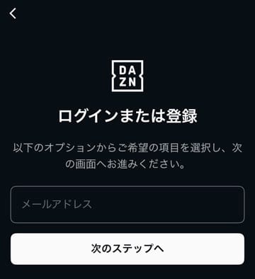 下の画像でDAZNのアカウント作成した時のメアドとパスワードでログインできます。