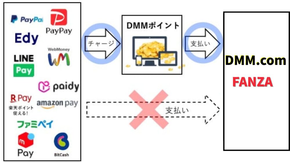 PayPayでの直接払いはFANZAのみ対応で、DMMはポイント経由で関節的にPayPay払いが可能です。